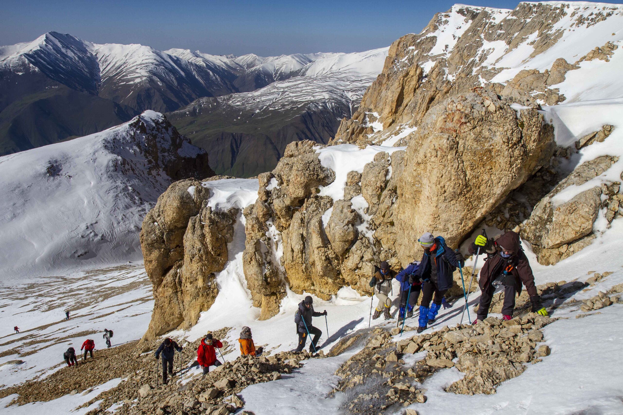 Heydar Peak is one of the three main peaks in the Gizilgaya massif, located on a steep, dramatic rocky terrain. This 2-day camping expedition is scheduled for May 9-10 (with May 16-17 as a backup). The route takes us through the southern part of the mountain, offering a mix of alpine meadows and technical rocky sections.